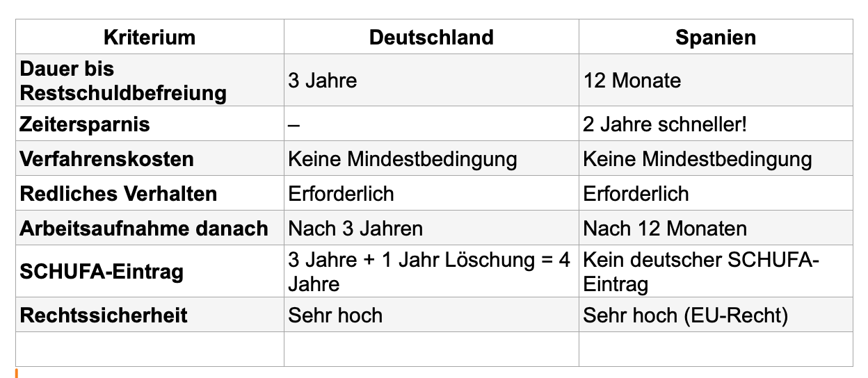 - Es geht sogar noch schneller! Innerhalb der EU gibt es eine legale Möglichkeit, bereits nach 12 Monaten schuldenfrei zu werden – in Spanien.